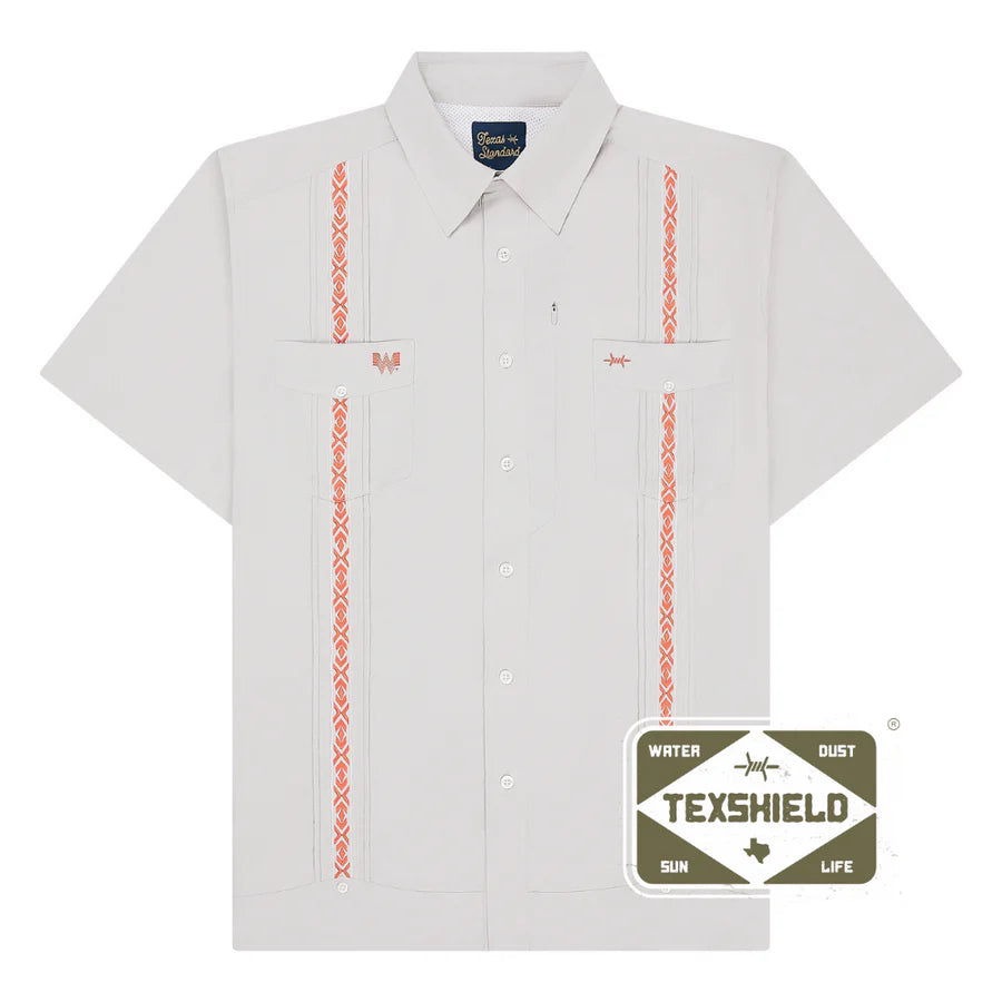 We took our game-changing Tejas Guayabera and transformed it into a versatile fishing shirt packed with features and functionality. The Guayabera Libre brings along staples from our cotton/linen Guayabera such as the hidden button-down collar, double-breasted pockets, and custom embroidery; and introduces functional features including a hidden zipper pocket on the chest and mesh-lined venting on the back. The breathable, moisture-wicking fabric offers UPF 40 sun protection to keep you feeling cool and looking even better whether you're dropping in for a lake fishing adventure or wetting your line in America's Third Coast.